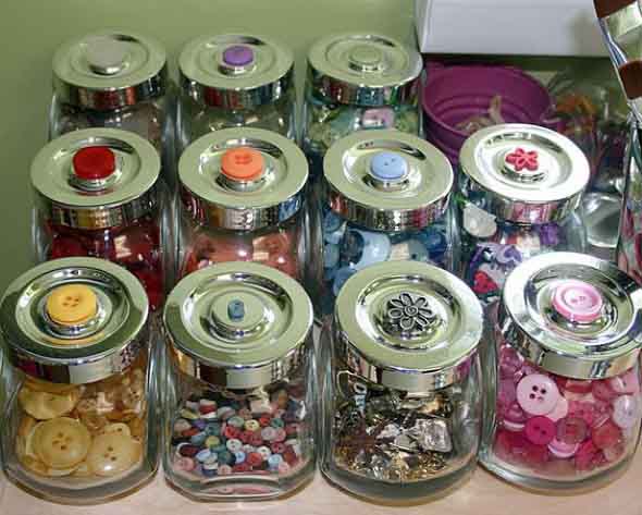 Utilize também potes vazios para guardar pequenos objetos, dentre eles botões, parafusos, miçangas, etc.