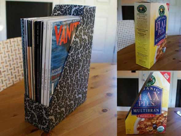 A reciclagem das caixas de cereais, assim como as caixas de papelão, é uma forma de aproveitar este material muito usado no dia a dia, em um objeto que possa ser reaproveitado em outras ocasiões.